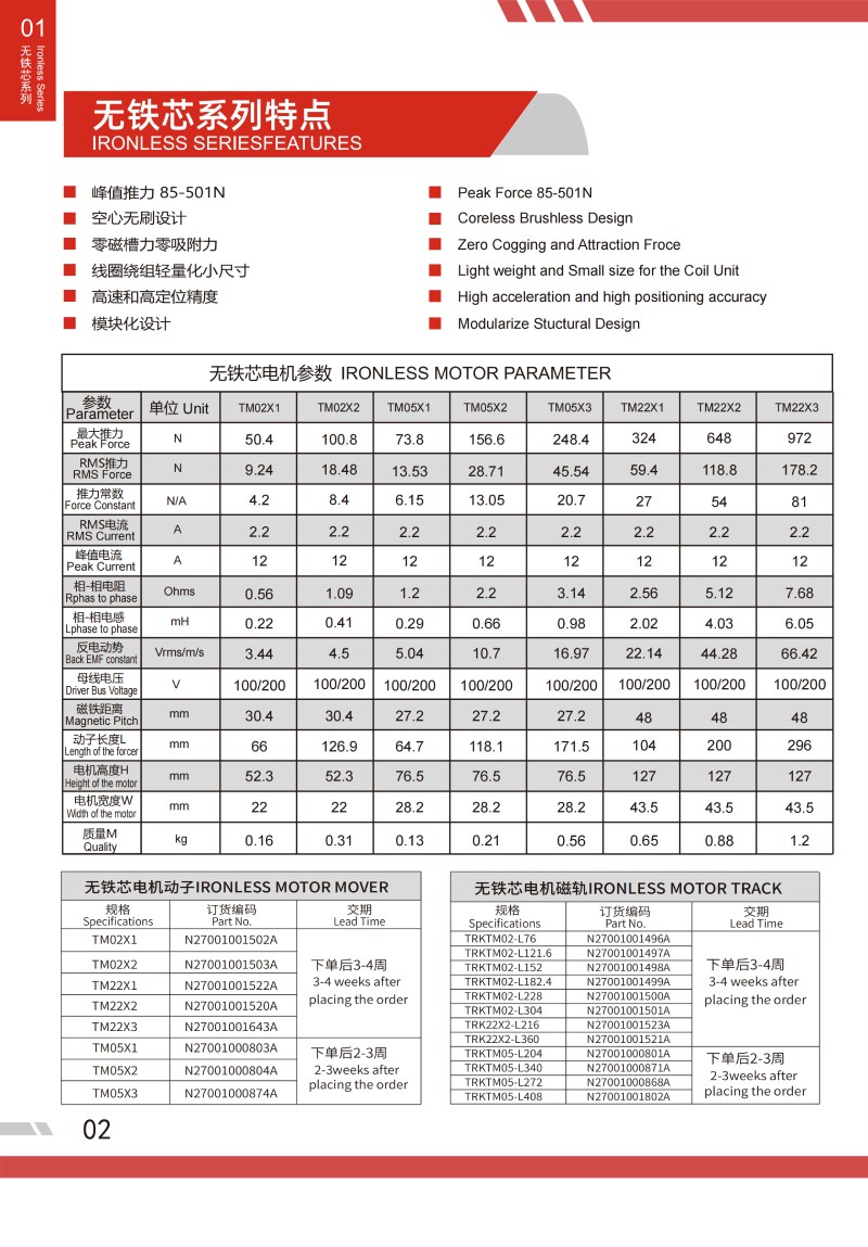 無鐵芯直線電機參數IRON LESS MOTOR PARAMETER